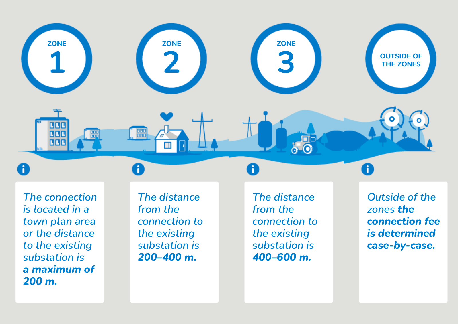 Low voltage connections VAT 25,5 % Zone 1: The connection is located in a town plan area or the distance to the existing substation is a maximum of 200 m