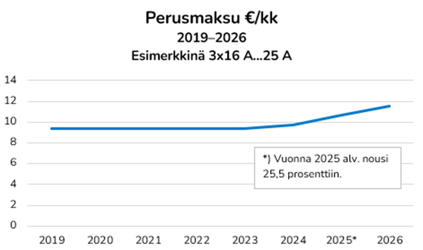 Lisäksi korotuspainetta asettavat vuoden vaihteessa nousseet kanta- ja alueverkkomaksut. Nämä muodostavat noin kolmanneksen korotuksesta. Edelliskerran kyseiset maksut nousivat vuoden 2025 alusta.